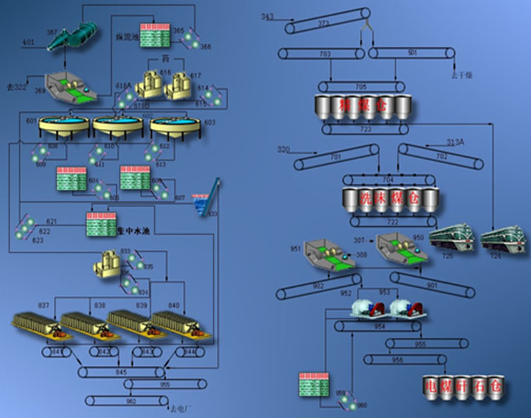 煤炭加工、矸石处理、材料和设备输送等构成了矿井地面系统。其中地面煤炭加工系统由受煤、筛分、破碎、选美、储存、装车等主要环节构成。是矿井地面生产的主体。